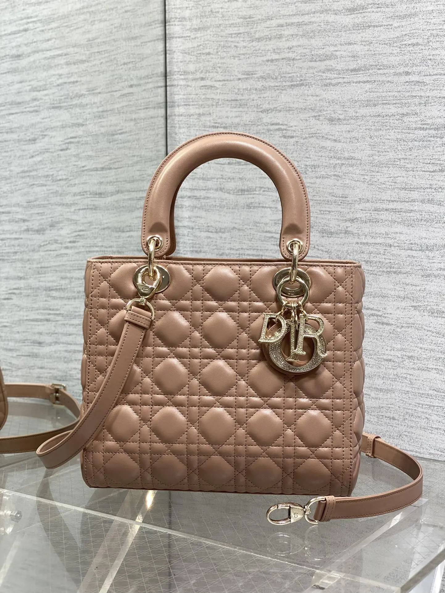 Lady Dior Four-Stitch Diamond Buckle Series Handbag with Letter Strap